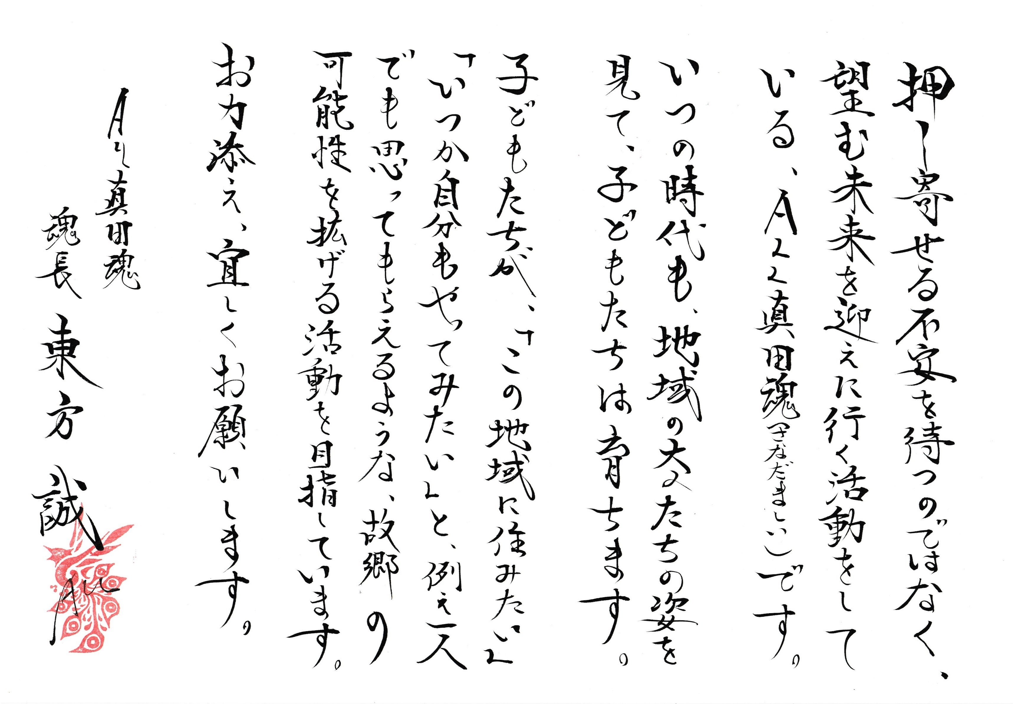 今やっている事が馬鹿だ無駄だと笑われたって、若者が可能性を感じられず戻ってこない地域で行動を起こし、大人が楽しんでいる姿を、子どもたちの、例え一人であっても、「真田っていいなぁ」「なんか楽しそうだなぁ」と思ってもらえたら、それは未来に向けた大きな財産ではないでしょうか?