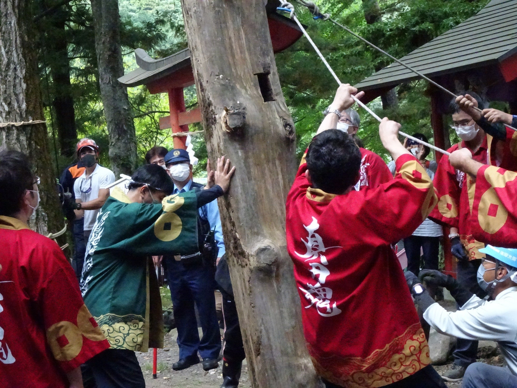 人が集まらなけば動かすことのできない、御柱を一緒に曳行して境内に建立しましょう!!