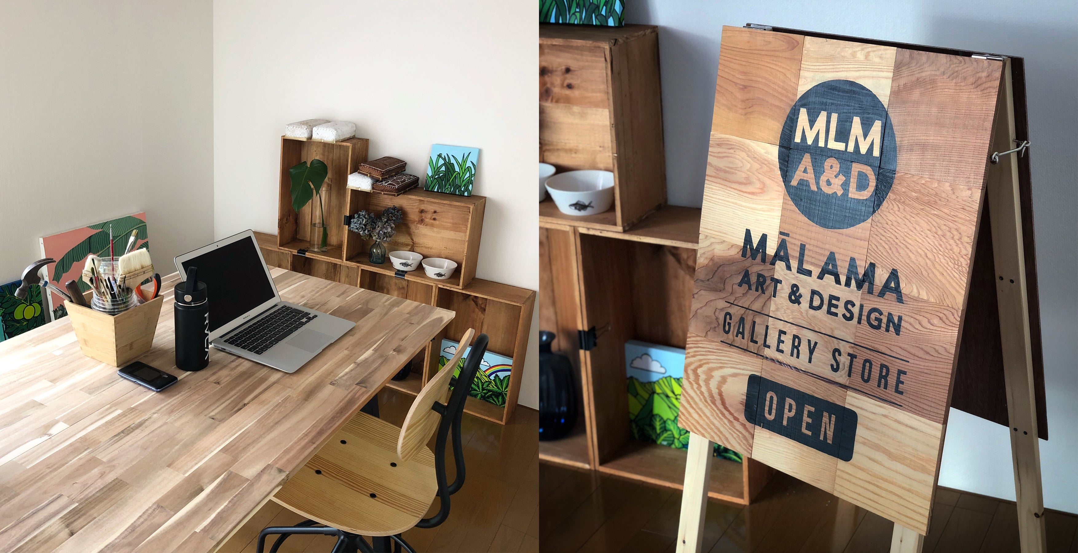 2020/09/11 22:30こんにちは!MĀLAMA Art & DesignのRoxyです。先日、アトリエで作業するのに必須な大きいテーブルとオープンギャラリー時に皆様をお迎えするA看板がついに完成しました!テーブルは気に入ったものがありましたがとっても高かったので、どうしようかなと思っていました。そんな時、A看板の材料を買いにホームセンターへ行ったら、素敵なアカシアの集成材が売っていて、これに脚付ければいいじゃない!と自分で作ることになった次第です。濃淡が美しいアカシアの集成材。電動スクリュー最強ですね!まさかこんなものを自分がガンガン使う日が来るとは思いもしませんでしたが、使い出したら楽しくていろいろ作りたくなってしまいました♫軽量化を図った&ちょっと横着したせいで、この後「完成〜」と思って起こそうとした時全部外れる(T-T)というアクシデント…いやちょっと想像してました。笑失敗を乗り越えて完成したのがこちらいい感じです!!そして同日、1ヶ月近く取り掛かっていたA看板もついに完成!作業テーブルも完成したのでこれから皆様へお送りする返礼品の制作や準備に取り掛かっていきます♫引き続き、ご支援・拡散のご協力宜しくお願い致します! もっと見る