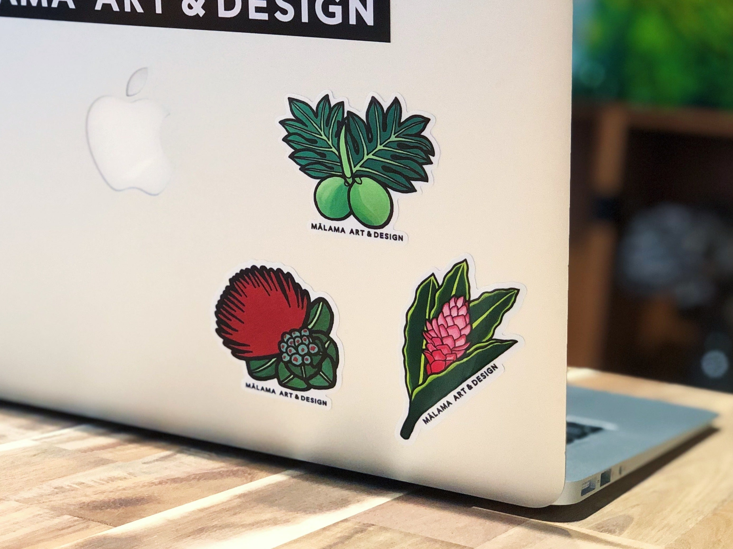 ハワイで見かける植物(パンノキ、レフア、ジンジャー)のステッカー。