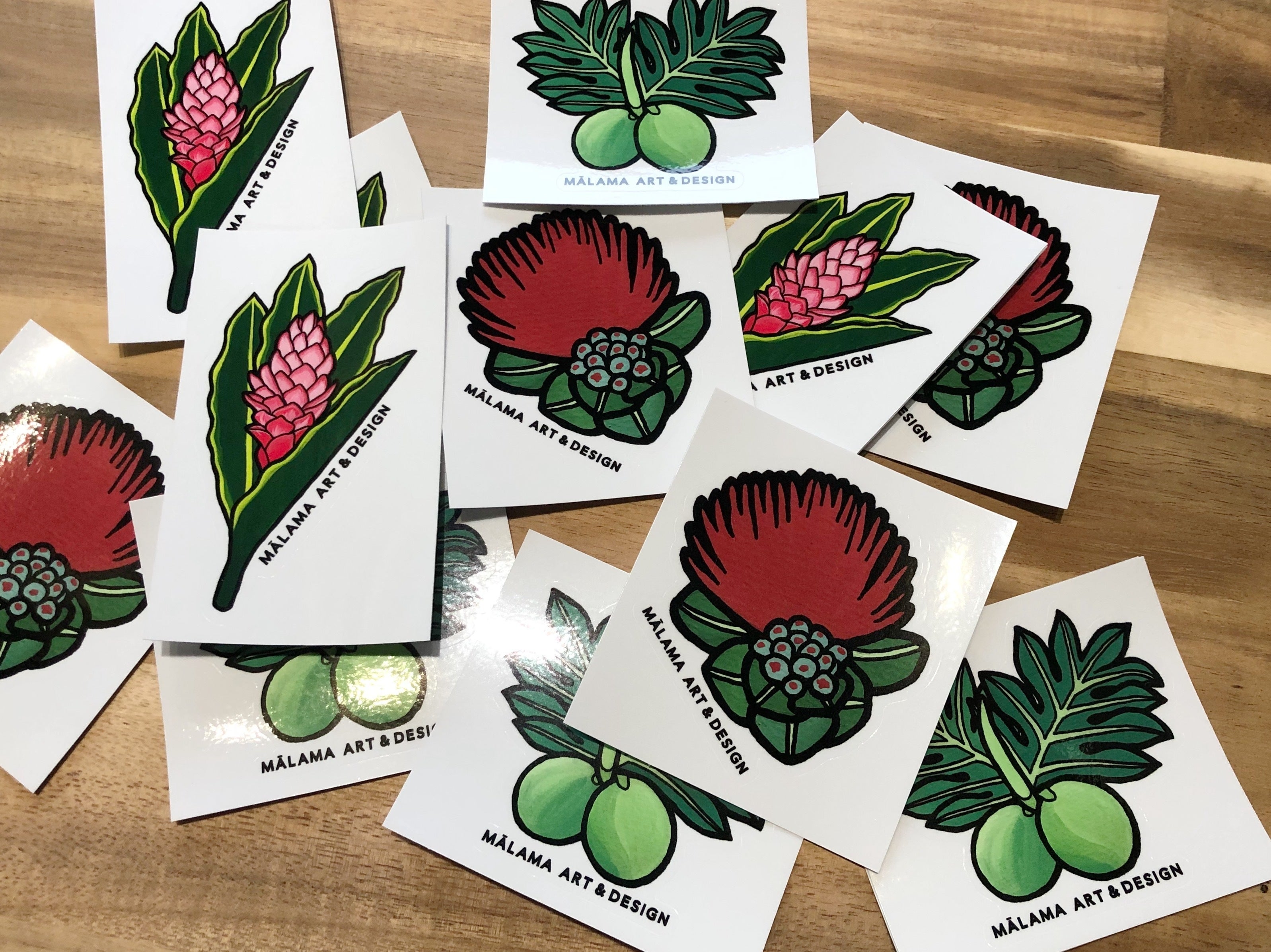 ハワイで見られる植物を屋外対応のステッカーにしたもので、車、パソコン、サーフボード、スーツケースなどいろいろなところに貼っていただけます♪