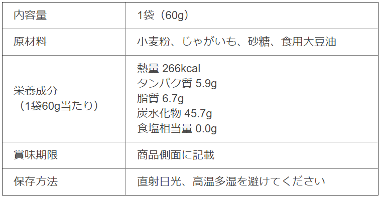 通常、かりんとうの材料にジャガイモは使いませんが、こちらの商品には、ジャガイモ(まるきっちゃん)をふんだんに使っております。