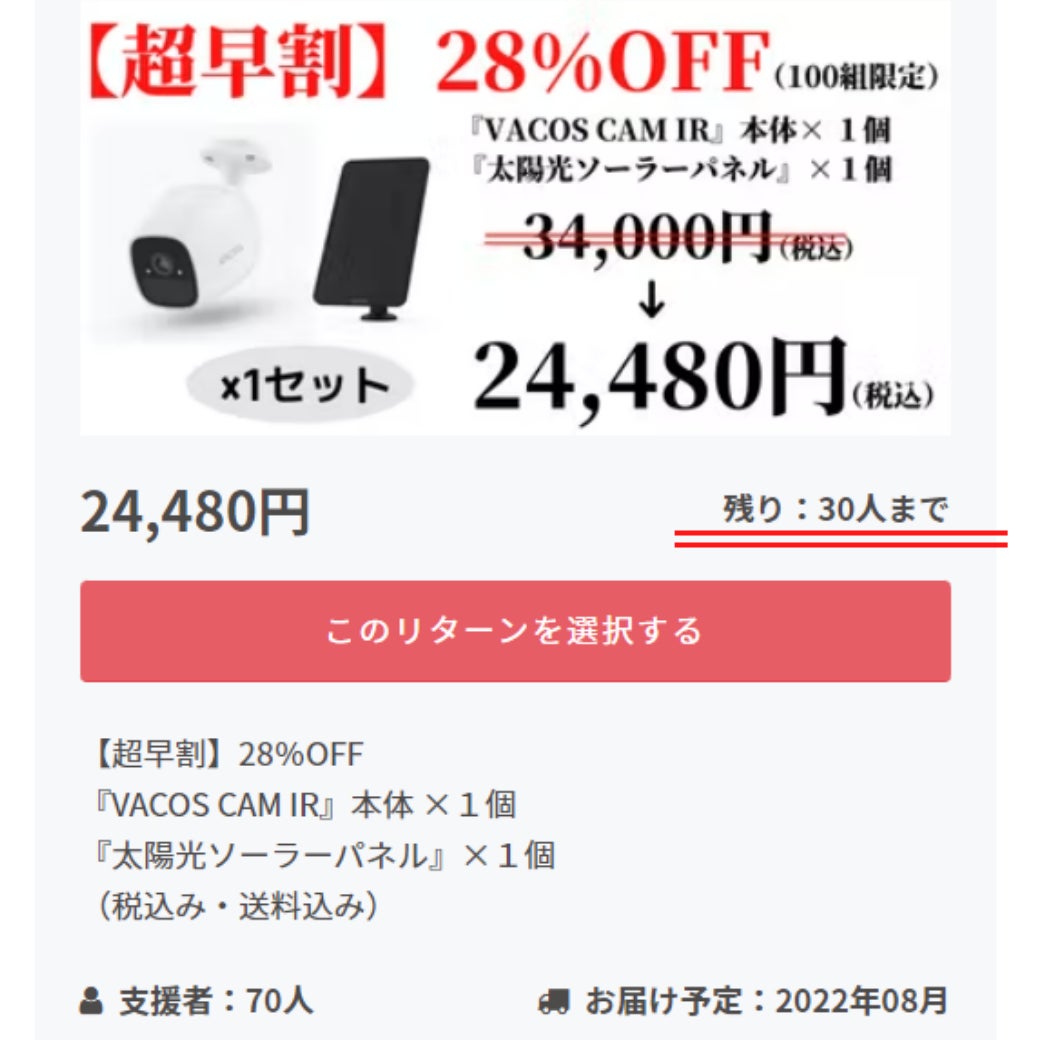 お陰さまで、Vacos Cam IRは、支援金額330万円、支援者数100人を超えることができました。本当にありがとうございます。