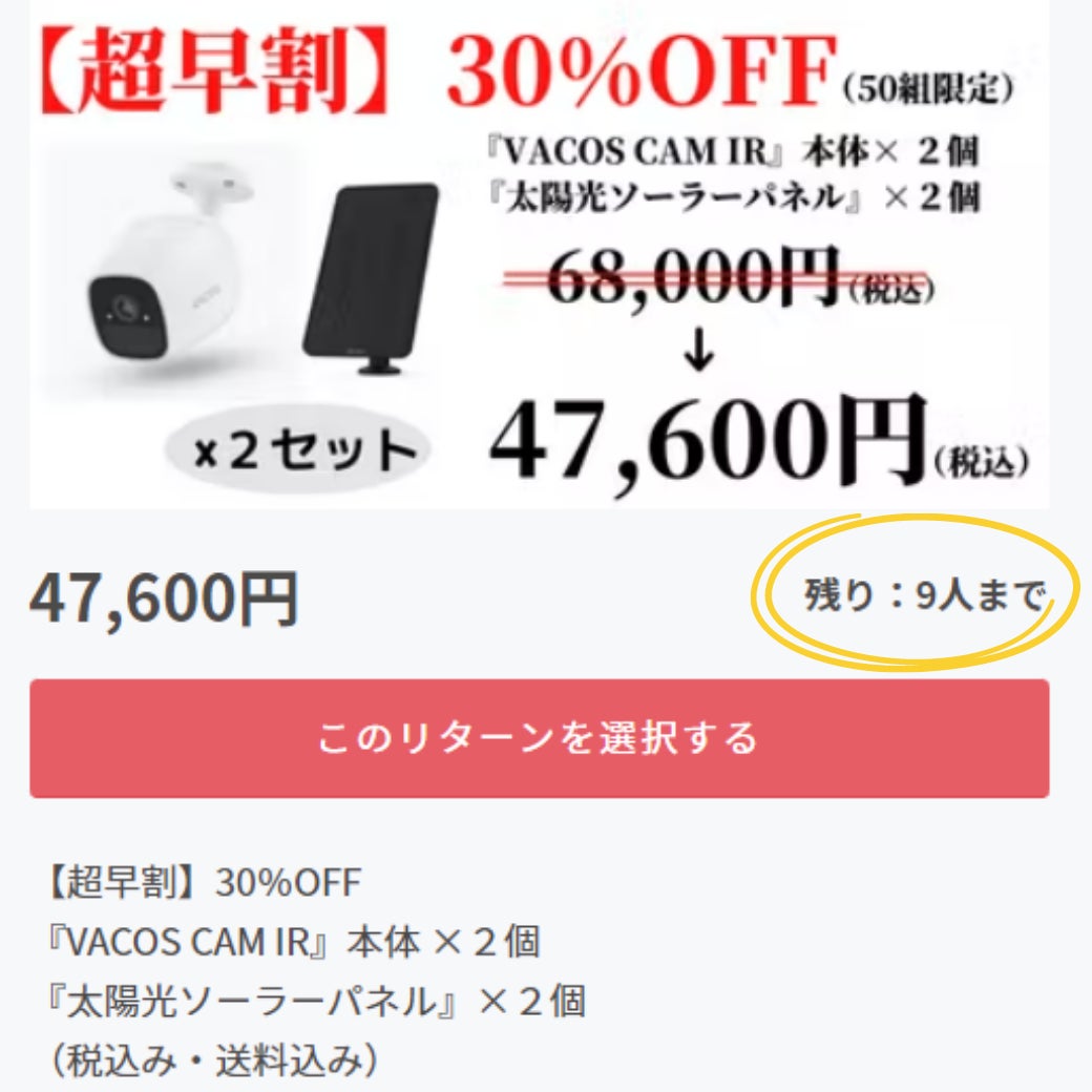 超早割30%OFF(2個セット)のリターンも残りわずか9セットです。