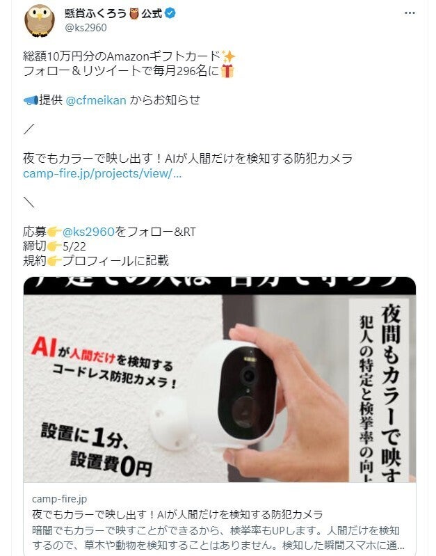 総額10万円分のAmazonギフトカード、フォロ一&リツイートで毎月296名にプレゼント!
