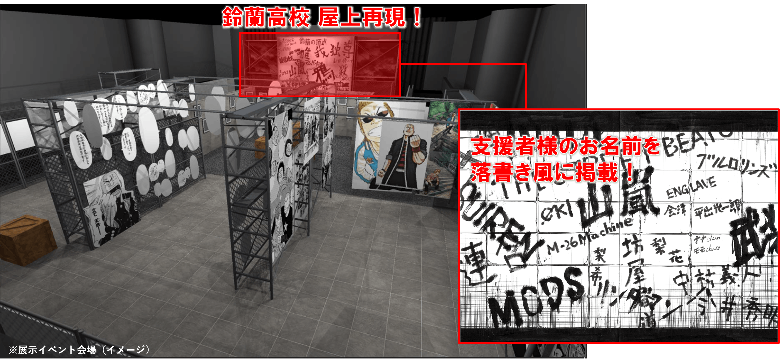 その中の目玉となる展示企画で、限られた実力者のみが許されたカラスたちの聖域「鈴蘭高校屋上」を再現し、そこで伝説の男「坊屋春道」と一緒に写真が撮れるフォトスポットを、皆さんと一緒に作り上げたいと考えました。
