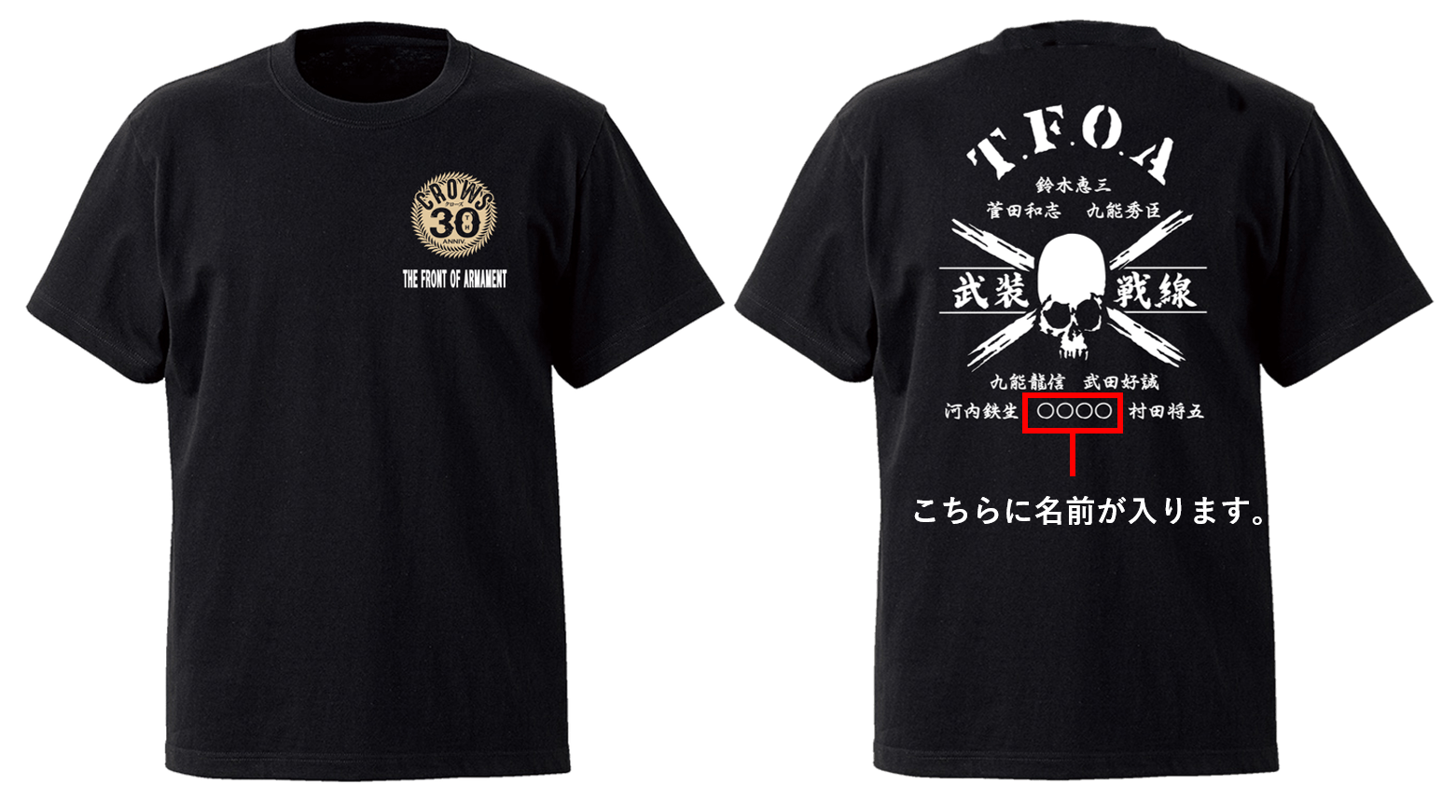 ⑤支援者様のお名前が入った、世界に1枚の武装戦線名入れTシャツ