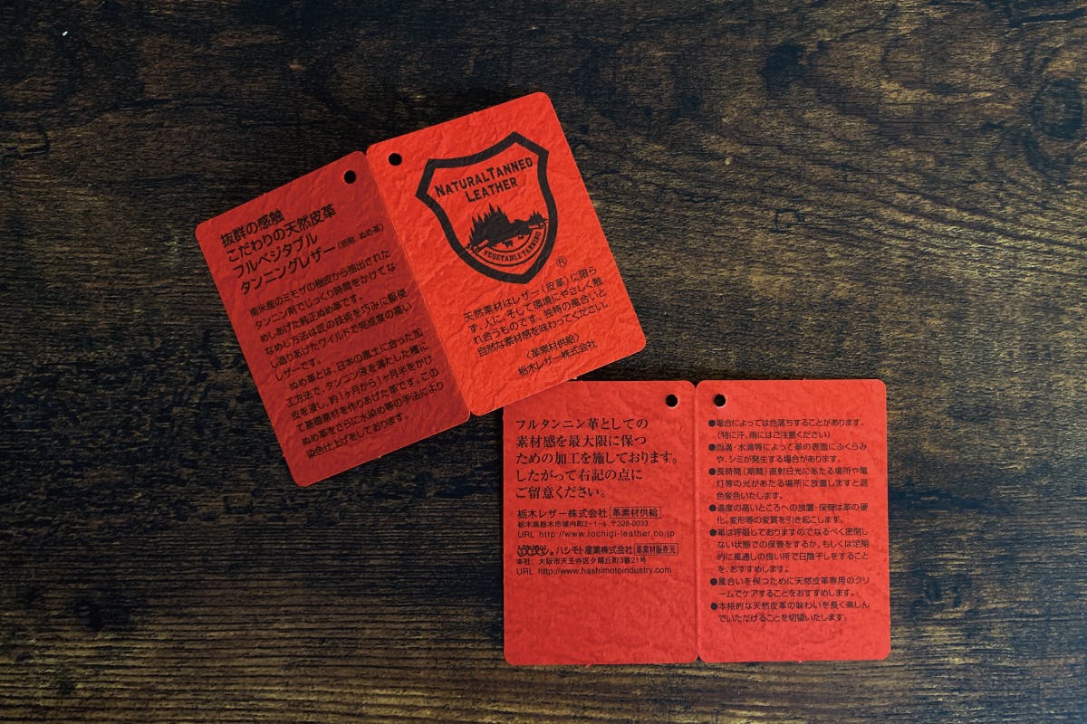 天然由来の植物鞣しによる素材ならではの風合いを生かした、栃木レザーという確かな品質の証です。