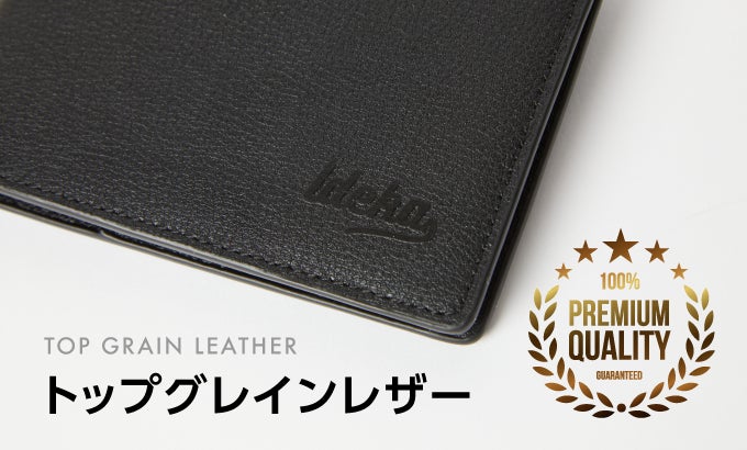 本革に特殊加工をしており、柔らかいことが特徴。表面も滑らかで若干の光沢があるものです。 手に取ればわかる高品質なプレミアムレザーを採用。使用するほど革の味わいが楽しめます。