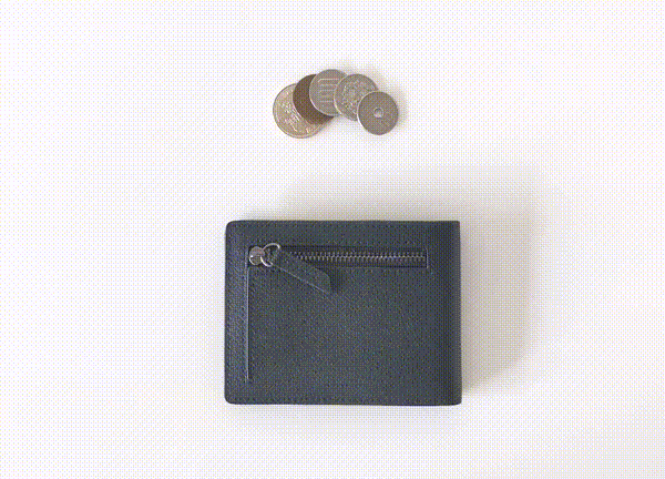 財布の外側には小銭入れを備え付けています。マチ部分のある奥行がある取り出し口となっているので、出し入れも簡単。