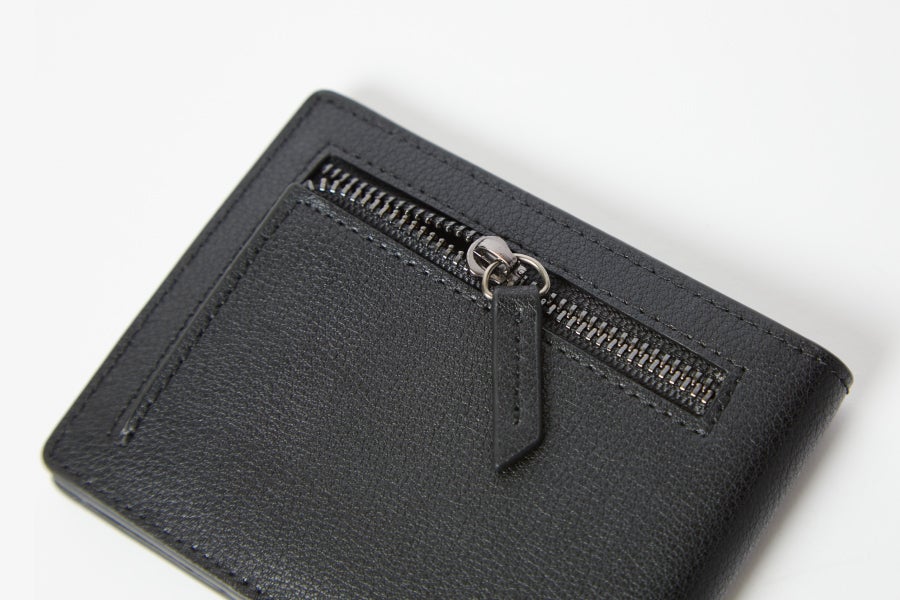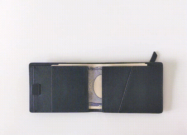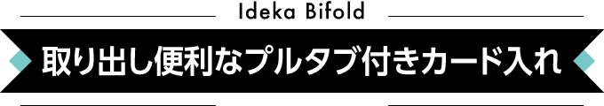 前作「Ideka 折りたたみミニ財布」でも非常に好評のプルタブ付きカード入れ。今回も採用しています。スタイリッシュにサッと取り出すことができ、利便性とデザイン性が共存しています。