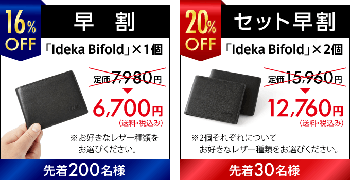 2021/01/28 17:23Idekaシリーズご支援者の皆様へ先日はIdeka Bifold (イデカ・バイフォールド)をご支援いただき誠にありがとうございました。使い心地はいかがでしょうか!?さて、本日はイデカ・バイフォールドがAmazonにて一般販売をスタートしましたのでその報告になります。また、一般販売開始に伴い「特別セール」として今日からの4日間限定で Ideka Bifold (イデカ・バイフォールド)及び前作のIdekaミニ財布をどちらも1000円引きで購入いただけるクーポンをお付けしております。クーポンを使用してお得にGETしちゃってください!※クーポンは商品ページの「1000円OFFクーポンの適用」にチェックを入れて使用ください。★特別セール 1/31まで★ ・ Ideka Bifold (イデカ・バイフォールド) 一般販売価格 8,800円 → 7,800円 www.amazon.co.jp/dp/B08V1CYY7B ・ Ideka ミニ財布 一般販売価格 7,800円 → 6,800円 www.amazon.co.jp/dp/B084VDC4TWもしよろしければ、ご家族・ご友人など周りの人々にも勧めていただけますと幸いです。合同会社マルタス カスタマーサポート もっと見る【発送完了】すべてのお客様への発送が完了しました