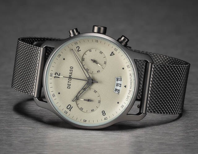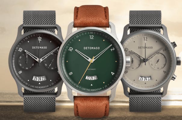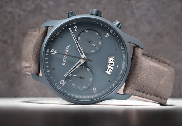 遊び心がありつつもシンプルさも兼ね備えている、日常やビジネスで使える大人の時計それがDETOMASO watchです。