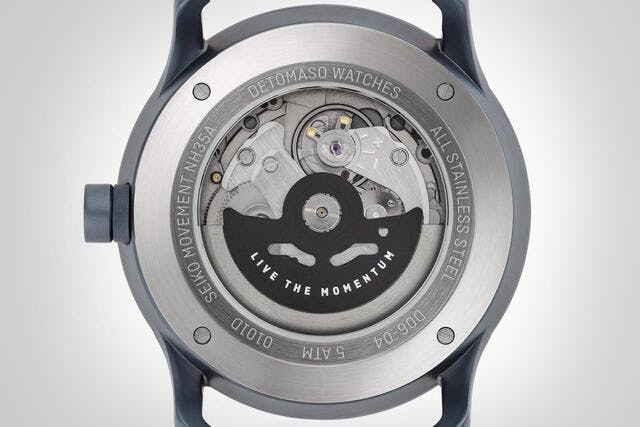 DETOMASOをMakuakeプロジェクトで紹介するにあたり、一番困ったのが文字盤にも印字されているLIVE THE MOMENTUMの訳でした。直訳では”勢いを生きる”です。イタリア的な自由な観点で見れば”ノリで生きよう”的な意味かとも捉えられます。ドイツのメーカー特にコンセプトをつくった経緯から推測し幾度となくインタビューを重ねた結果