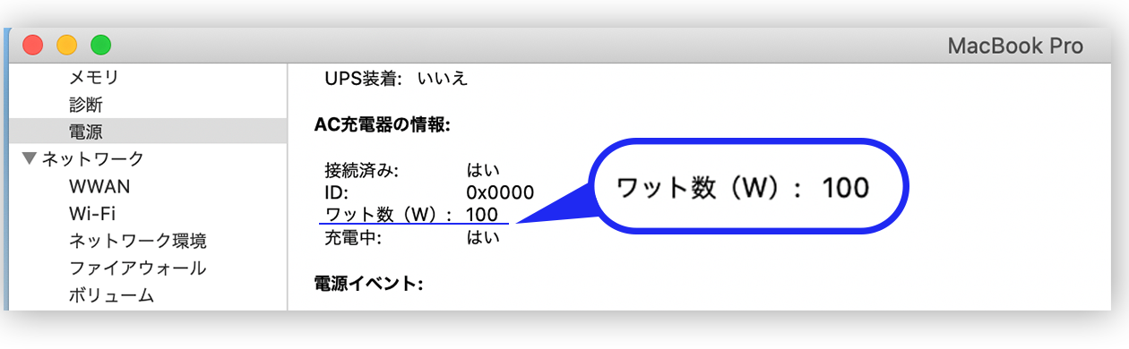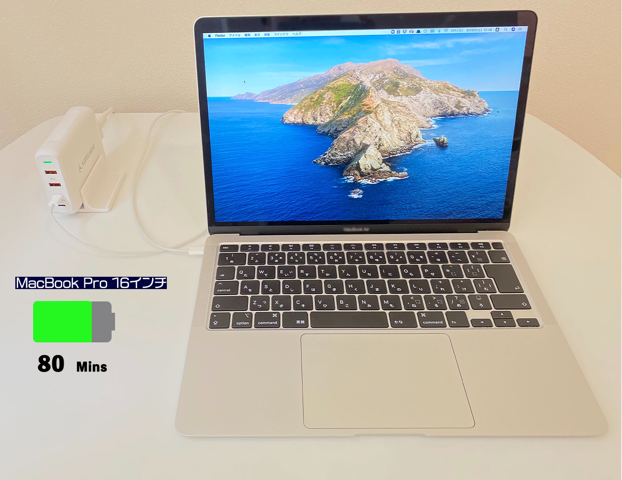 96Wの供給電力を必要とするMacBook Pro 16インチもしっかりで充電可能です。