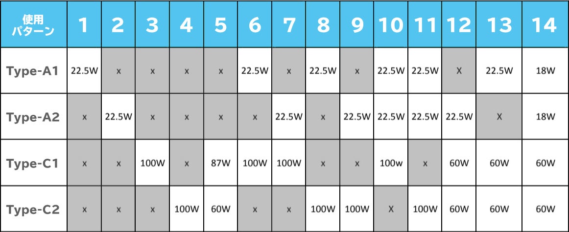 A:1つのUSB−Cポートからは最大87w、もう一つのUSB-Cポートからは最大60wの電力が供給されます。