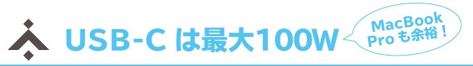 2つあるUSB-Cポートは単体利用時はどちらも100W出力に対応。