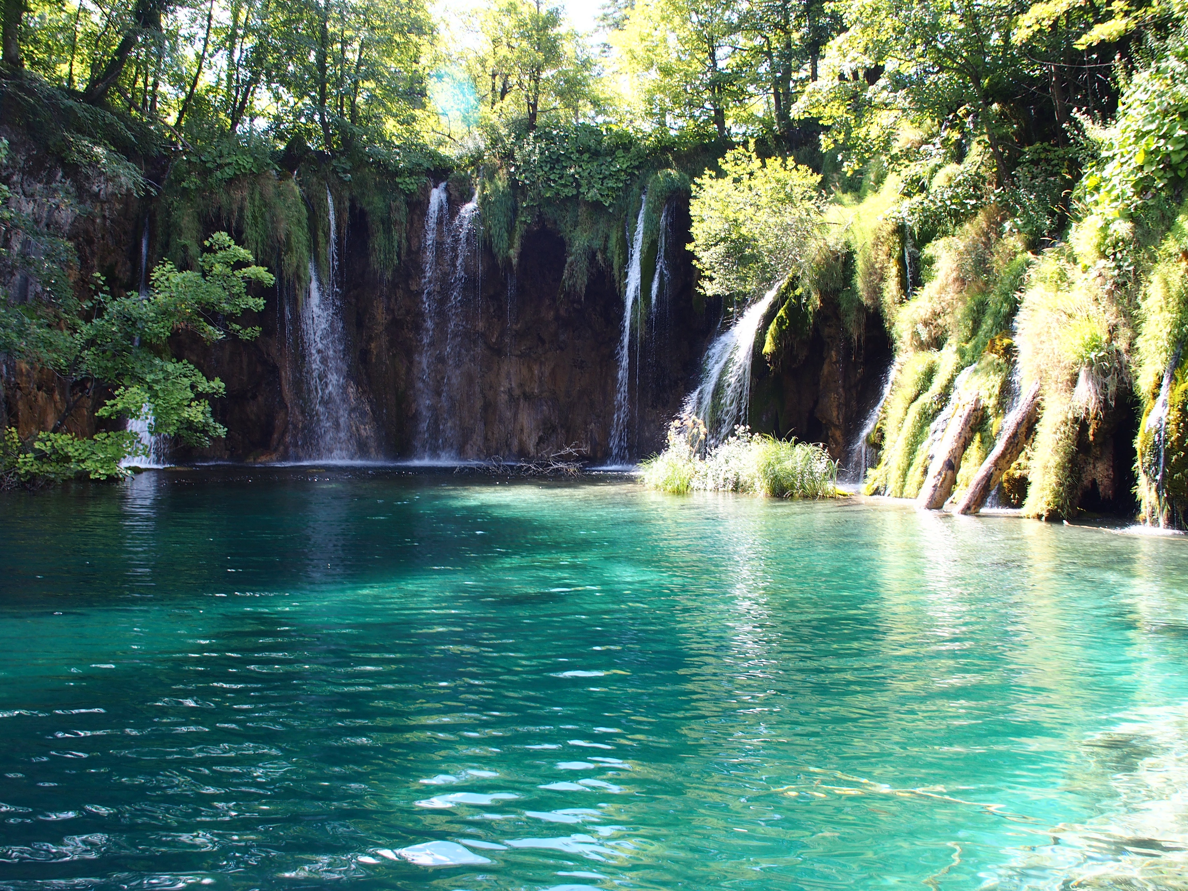 90個の滝とエメラルドグリーン色に輝く16個の湖たとても美しい。