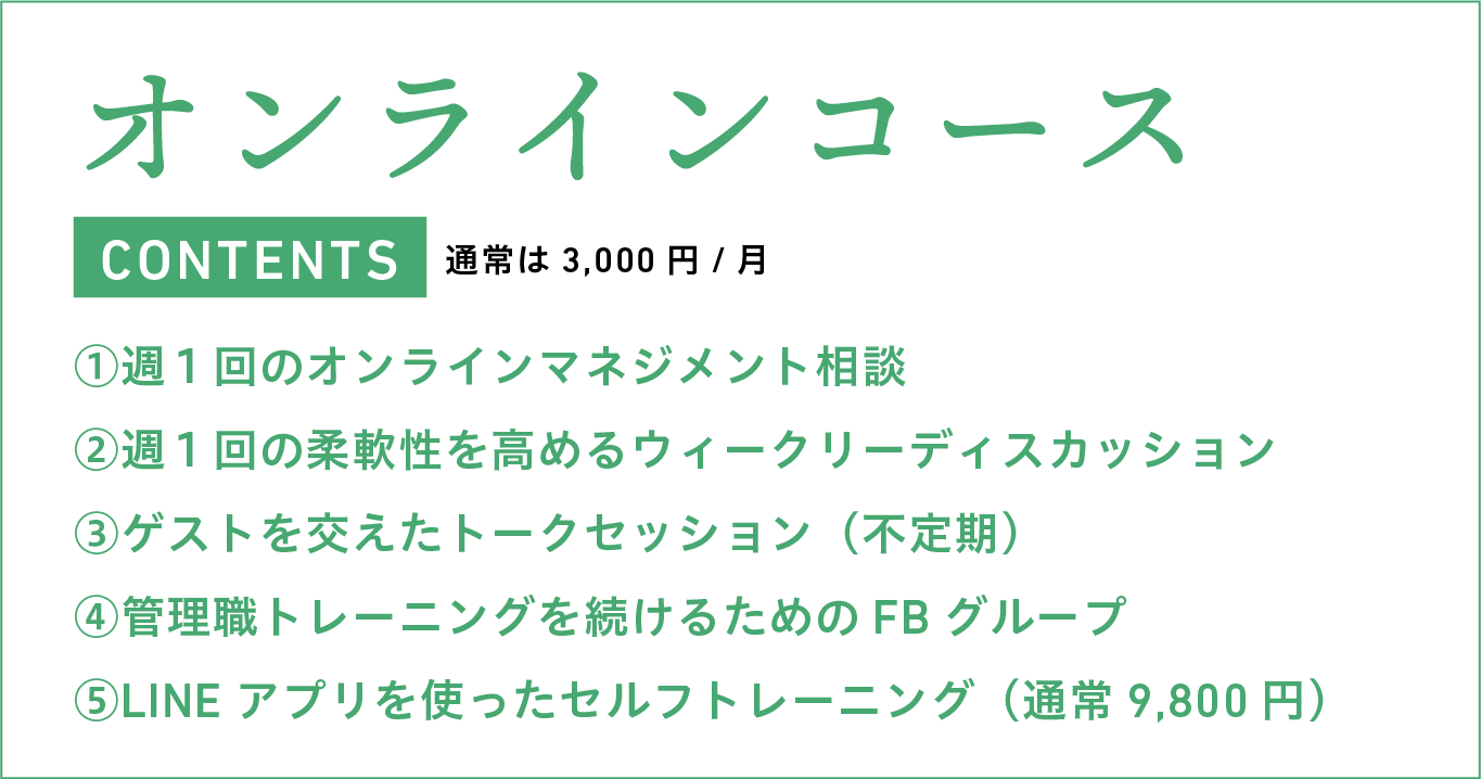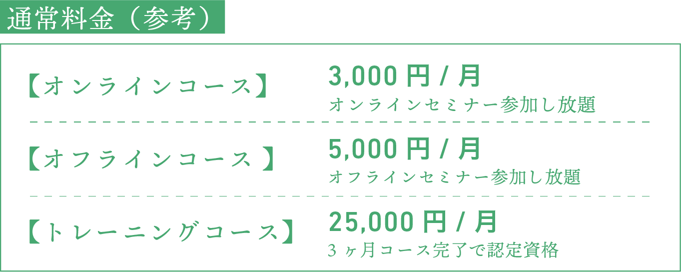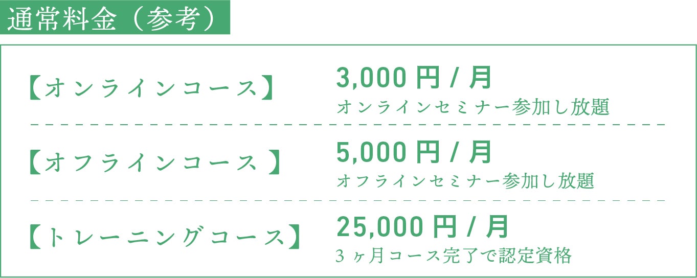 ※オフラインコースは5,000円/月になります。空きがある場合は少人数限定でオンラインコースの方でもオフラインでの参加が可能です。