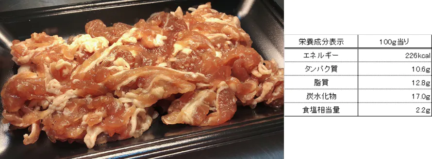 自家製たれ漬け宮崎県産豚肉小間切れ100gの栄養成分表示