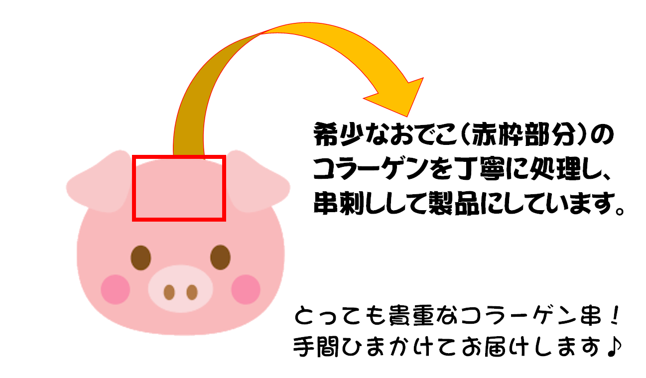 コラーゲンをとるのに最適な希少な豚のおでこの部分を使用しています!