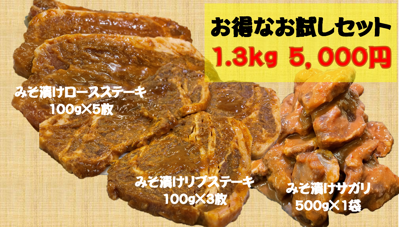 【緊急追加】お得な自家製みそ漬けお試しセット(1.3kg) 送料・税込5,000円