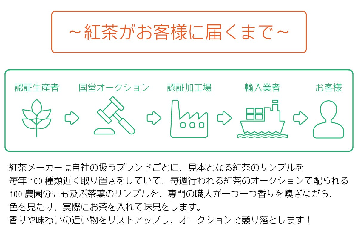 紅茶を落札しスリランカで1パックずつ手作業で詰めて、製品化し日本に直輸入しています。