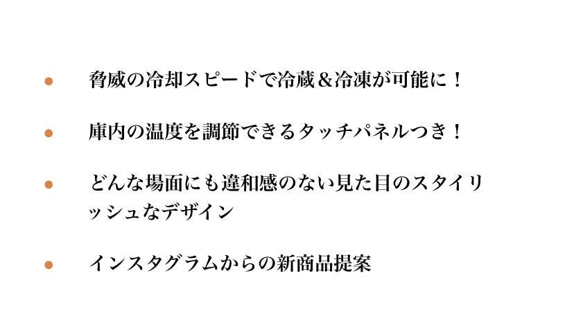 急速冷凍のスピード・省エネ等の高性能はもちろん、Instagramから出てきた商品の特徴を生かして蓋の開閉・タッチパネル等デザインの細部にまでこだわった商品です。