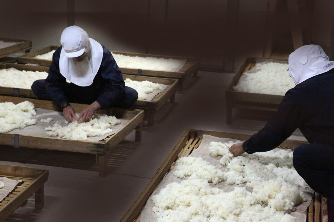徳島県西部美馬市にある酒蔵は、日本百名山の「剣山」、四国最大の河川「吉野川」、国内指折りの清流「穴吹川」など、豊かな自然と清らかな水に恵まれた古くは鎌倉時代に遡る地「喜来(きらい)」で、1896年に蔵を開き、伝統の技を受け継ぐ阿波杜氏が、手間を惜しまない昔ながらの技法で醸しています。「毎年同じ条件で、同じ様に造っても、同じ味にはならない。だからこそ、酒造りは面白く、難しい」と語る4代目蔵元杜氏は、気候と素材の状態を見極め、百有余年の時を先人達が刻んだ蔵で酒と対話しながら、原料米は地元産米のみを厳選。全国的にも数少ない「米と米こうじのみで造る蔵」として、最高の日本酒造りに挑み続け、純米酒造りを追求しています。