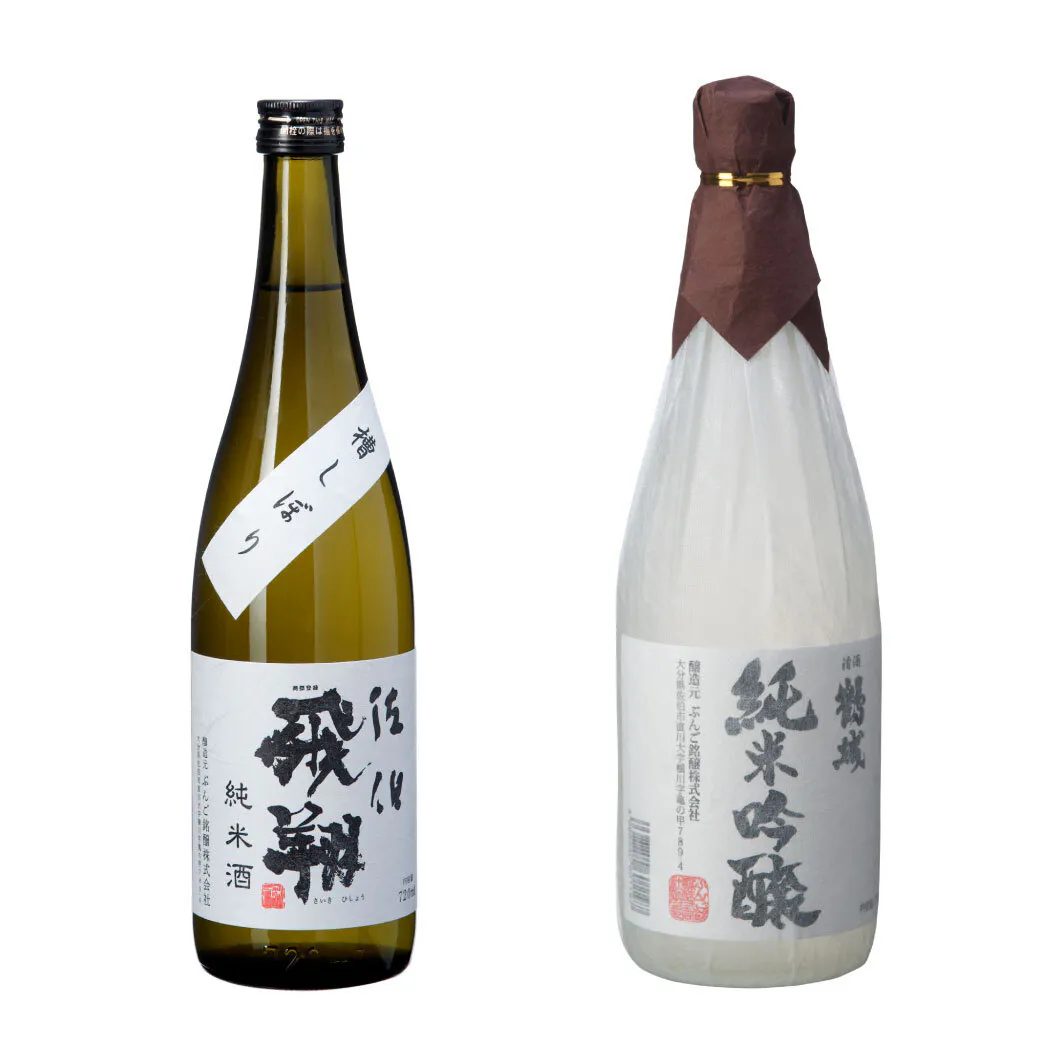 <銘柄①:佐伯飛翔 槽しぼり純米 (左)>