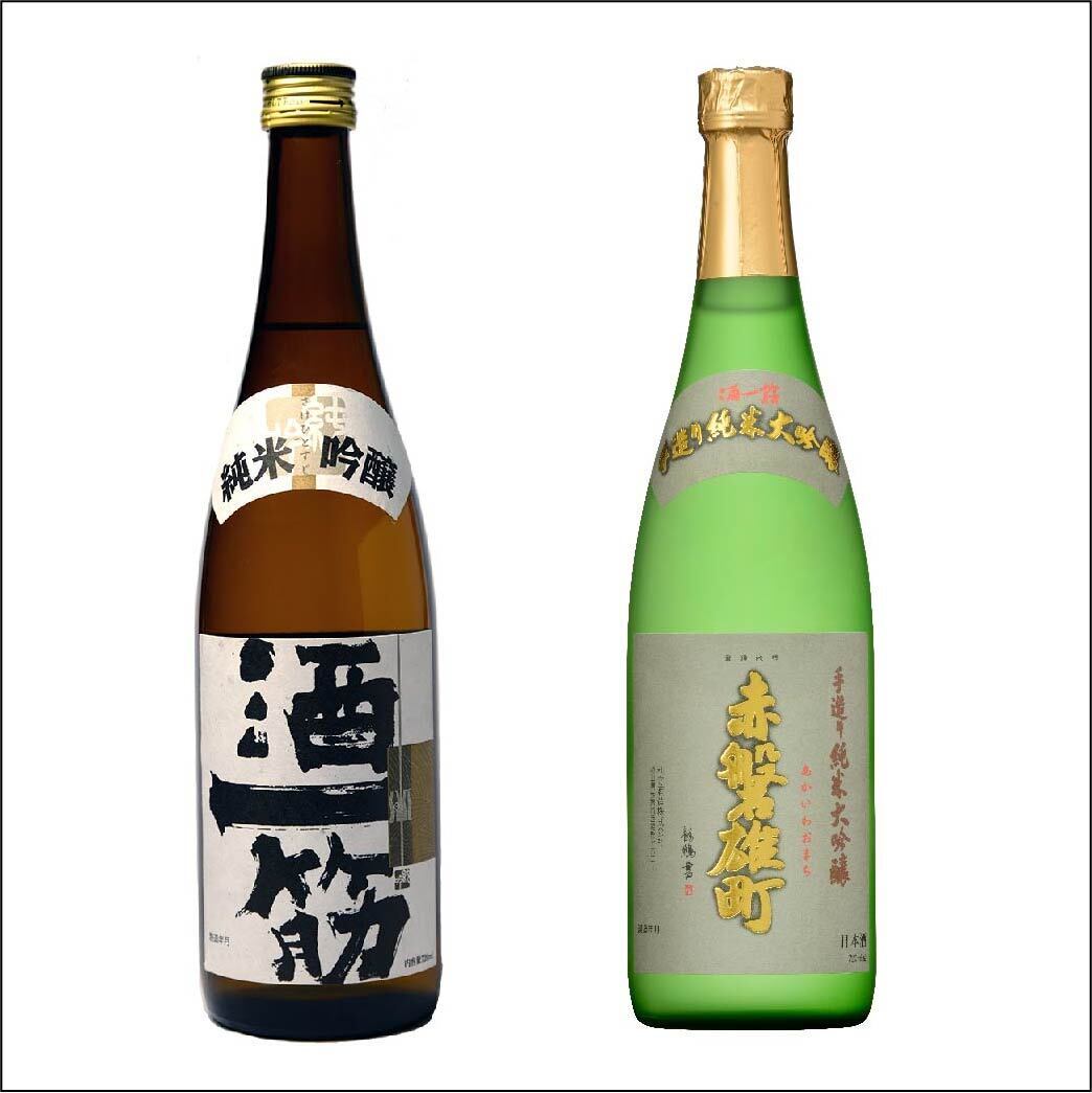 <銘柄①:酒一筋 純米吟醸 金麗(左)>