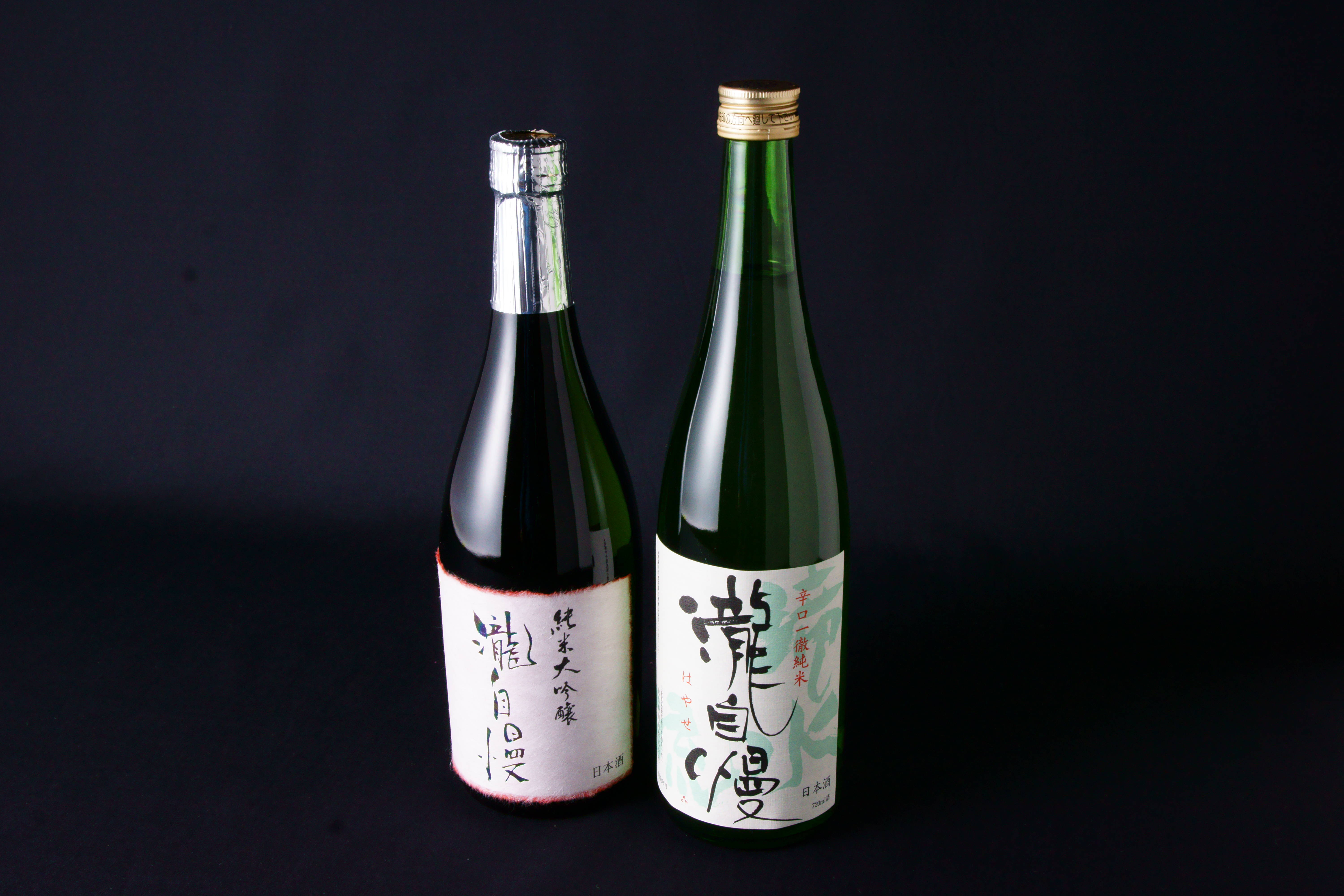 <銘柄①:辛口一徹純米 滝水流(はやせ) (左)>