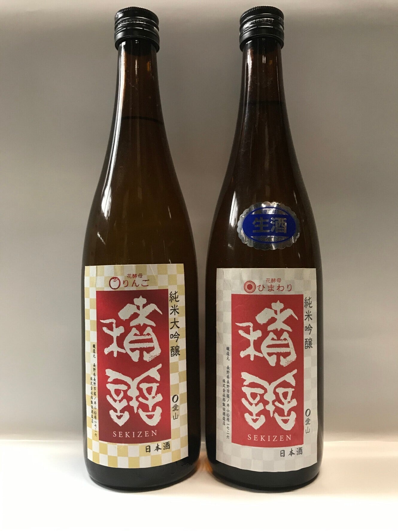 <銘柄①:積善 純米大吟醸 りんごの花酵母 (左)>