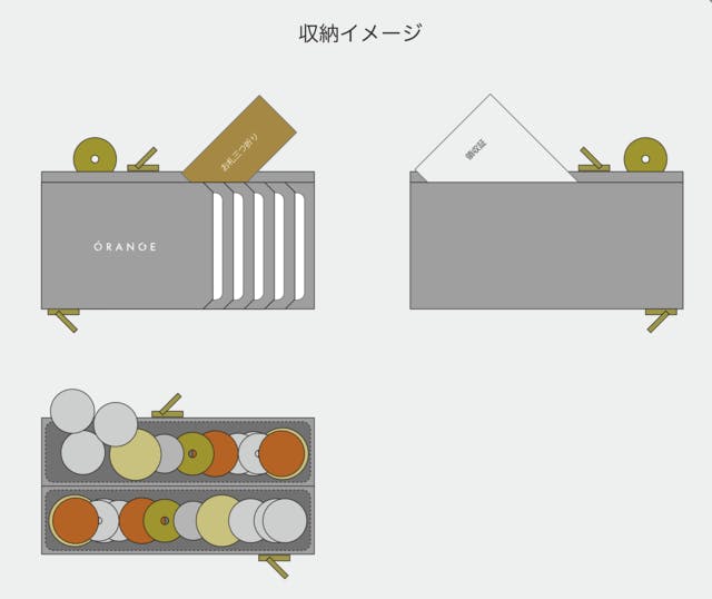 この問題を解決するアイディアが「上下にジップがあるダブルジップ構造」です。これによって小銭の取り出しやすさ+違ったアイテムの収納を可能にしました。