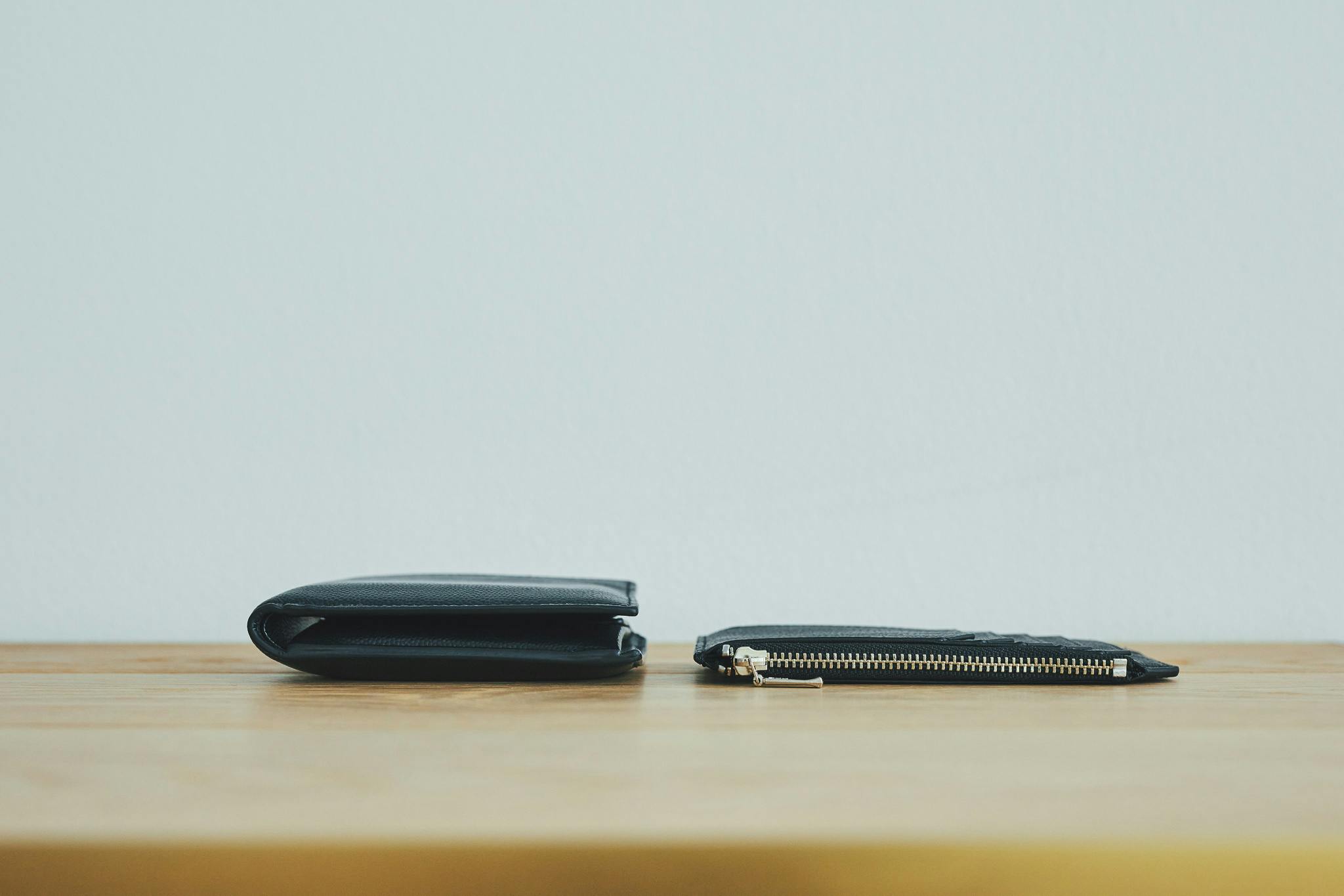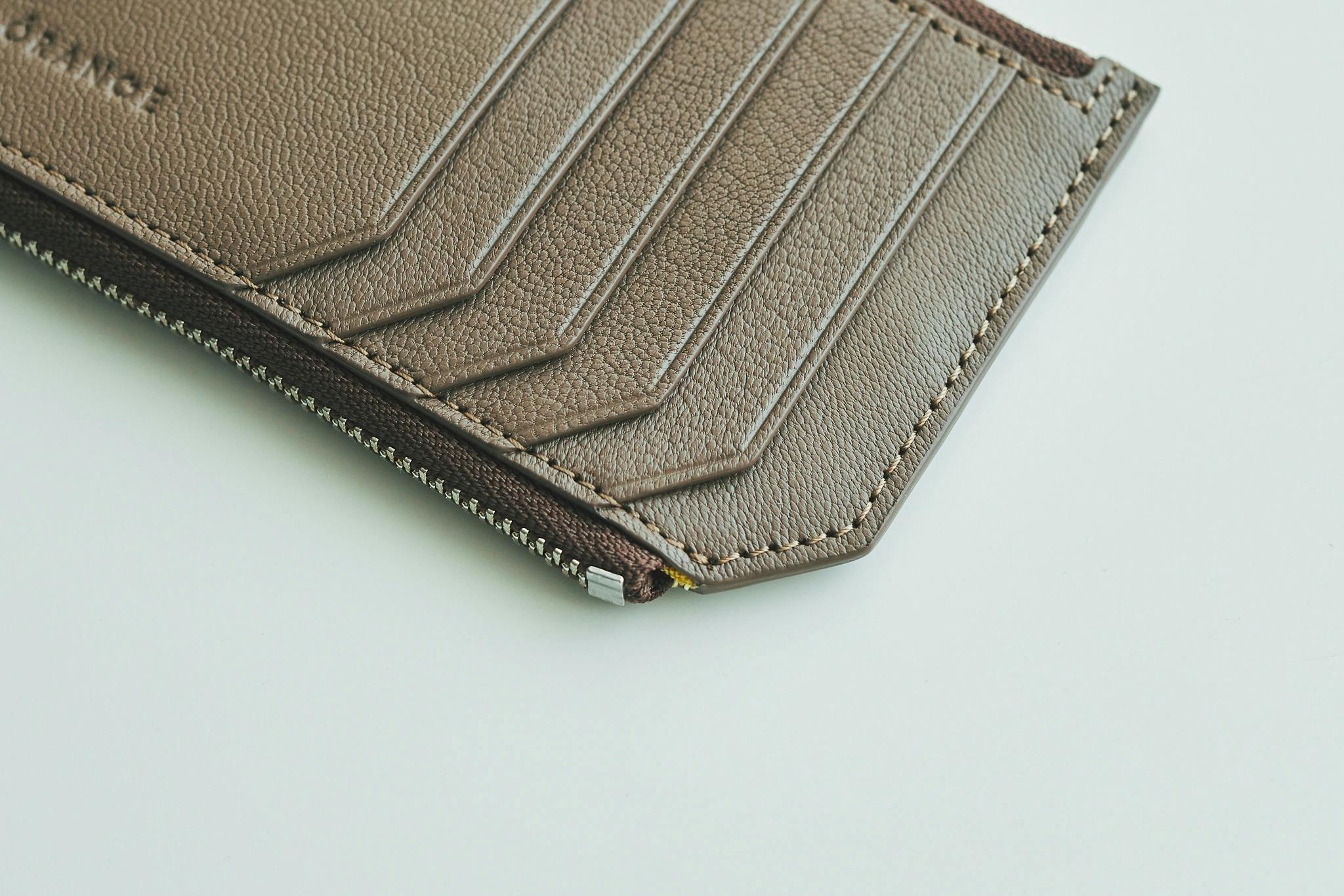 このダブルジップ構造を可能にするために小銭入れのスペースを上下で分けるような特殊な設計を行うことで、薄さを保ちつつ、収納力を高めています。