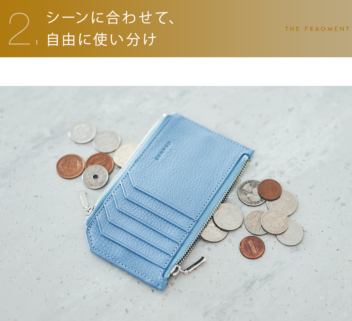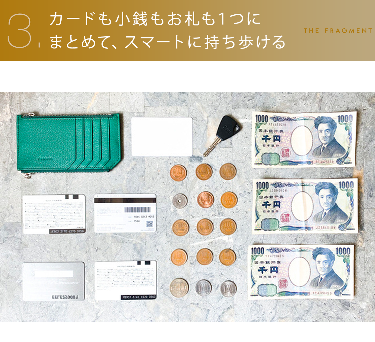 カードも小銭も鍵も全て、THE FRAGMENT 1つに収納できます。