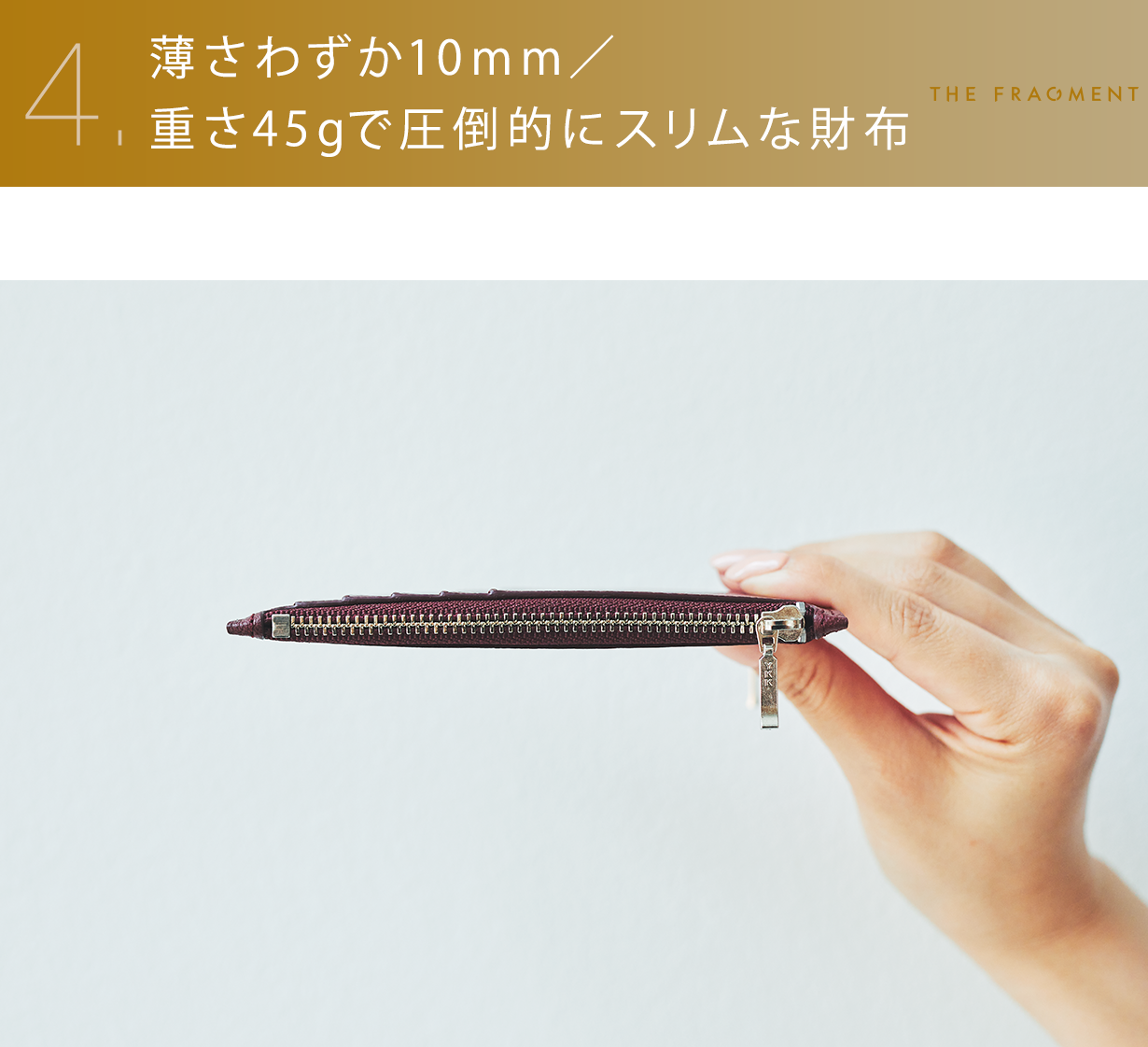 "これ1つで出掛けれる 薄さ10mmのスリムな財布「THE FRAGMENT(ザ フラグメント)」"です。