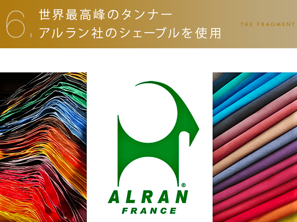ヨーロッパでも限られた一流メゾンだけが使用できる希少な高級山羊革を、THE FRAGMENTではフランスから輸入して使用しています。