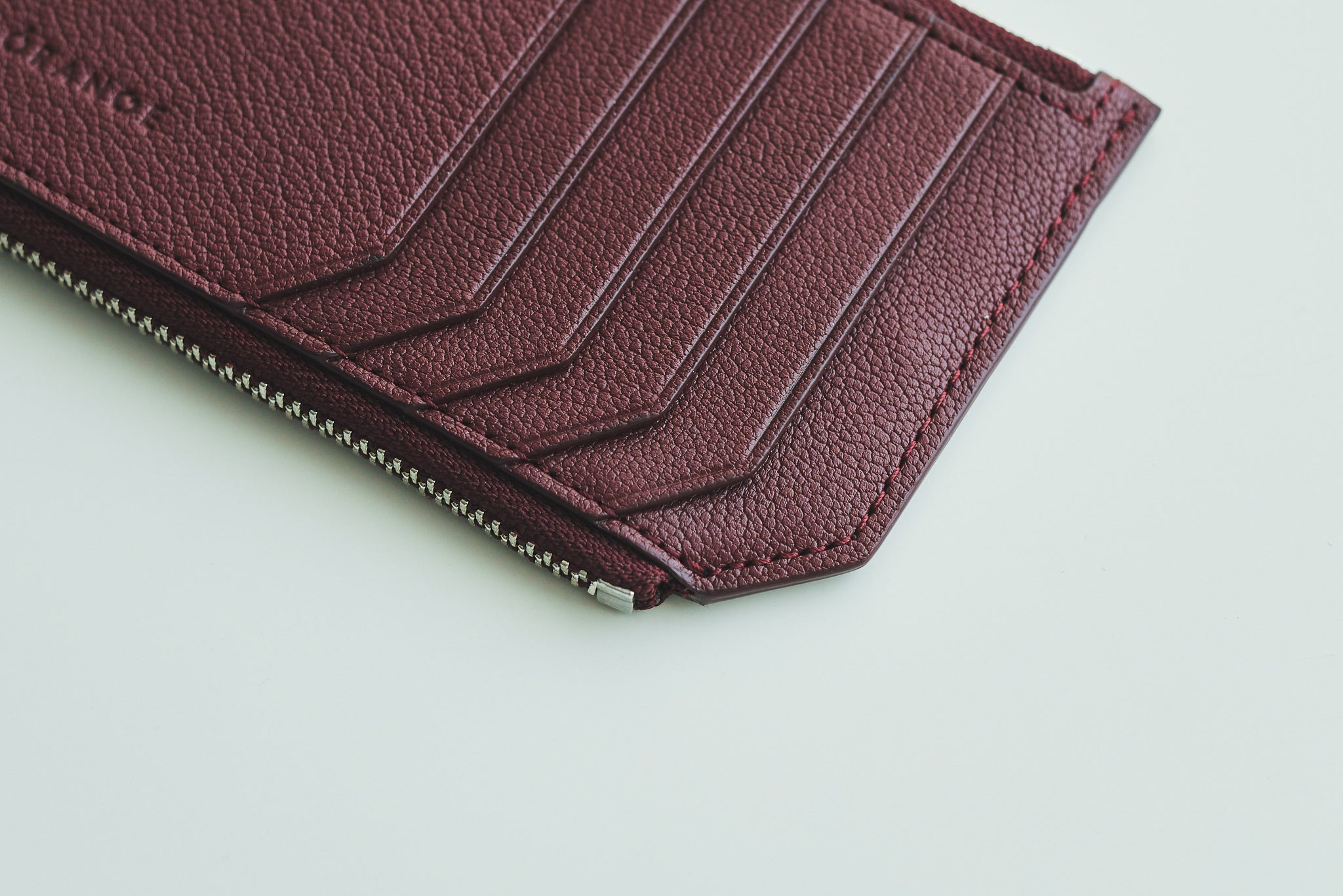 このダブルジップ構造を可能にするために小銭入れのスペースを上下で分けるような特殊な設計を行うことで、薄さを保ちつつ、収納力を高めています。