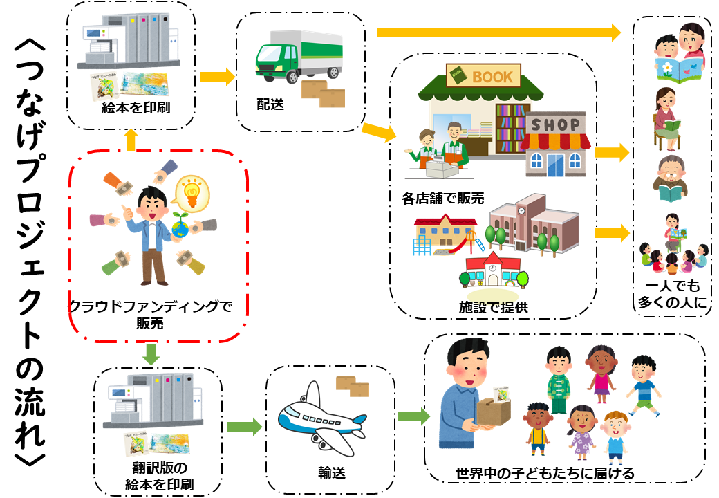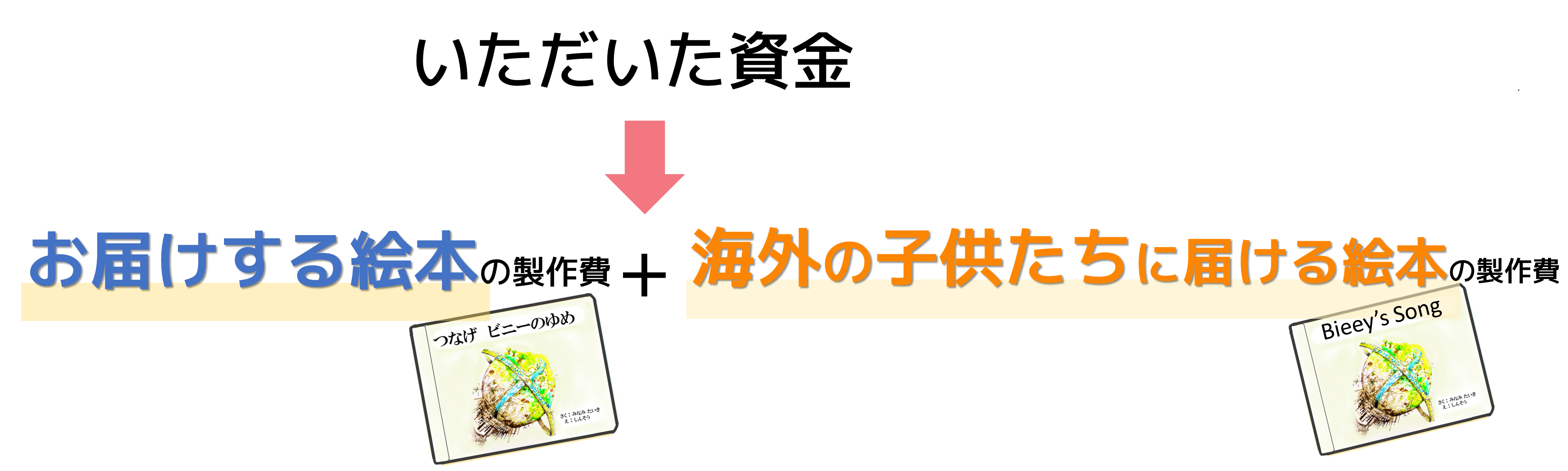 頂いた資金は、皆様にお届けする絵本と海外の子どもたちに送る翻訳版の絵本の制作費、輸送費など、全て絵本のために使われます。