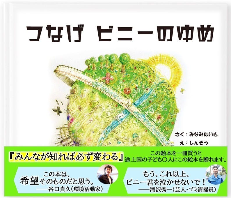 絵本『つなげ ビニーのゆめ』プロジェクトの代表の南大樹(19)と申します。