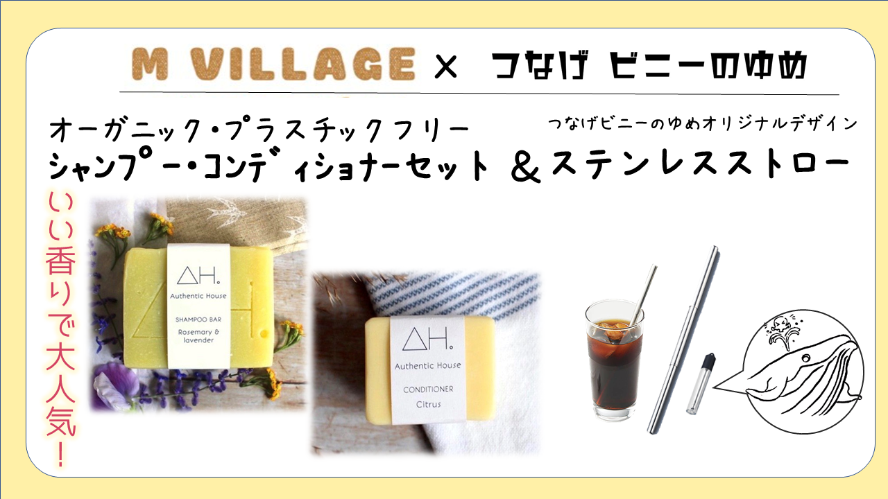 このプロジェクトを応援していただいている、M village-ハッピーにエコるシャンプー屋さんより、環境に優しい『シャンプー』と『コンディショナー』をご提供いただきました!! イギリス産ハンドメイドで天然由来原料100%です!!勿論プラスチックフリー!!香りがとってもいいと大人気の商品。身近な所から☆【M Villageさんからのコメント】「日本ではまだ珍しい固形のシャンプーとコンディショナーですが、詰め替える必要もなくプラスチックごみが一切出ません。またマイクロプラスチックが含まれておらず、自然由来の成分でできているので、赤ちゃんにも使える優しいものになっています。香りがとてもいいと大人気のハンドメイド商品です!」【リーダー南からのコメント】「私たちが普段使っているシャンプーやコンディショナー、歯磨き粉などにもマイクロプラスチックはたくさん含まれていて、そういったものは下水から海へ流れ出しているとも言われています。海がマイクロプラスチックだらけになる前にみんなで小さいところから変えていけたらいいなと思っています。このシャンプーやコンディショナーがそのきっかけになれば嬉しいです!」【M Villageについて】双子の大学生、みほとりほで運営をしています。エコなものを買うことは、人の心身が健康でハッピーになるのはもちろん、気候変動の緩和に貢献できたり海の生物をプラスチックから守れたりハンドメイド&ごみゼロで土壌や大気汚染を防げたり動物を搾取から守れたり。他にもたくさんの環境や社会問題の解決に貢献できます。“普段の生活を見直してみることが解決への一歩だと1人でも多くの方に実感してもらえるような存在になっていきたいです。【ステンレスストローについて】伸縮して持ち運びに便利な、オリジナルデザインステンレスストローです。洗えて繰り返し使えるのでとってもサステナブル!コンパクトに収納できる&ケースには穴がついているので、キーホルダーにすることができ、「忘れちゃった!」なんてこともなく、日常の持ち運びに便利です!洗浄ブラシもついています。☆脱プラ×脱プラ革命是非チェックお願いします!!(^^♪