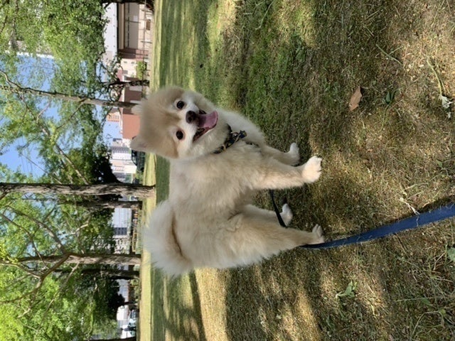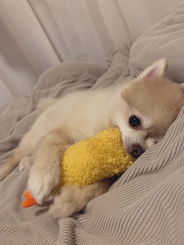 犬種はポメラニアンとチワワの混合種、男の子で、小さい頃からおもちゃで遊ぶことが大好きな子です。