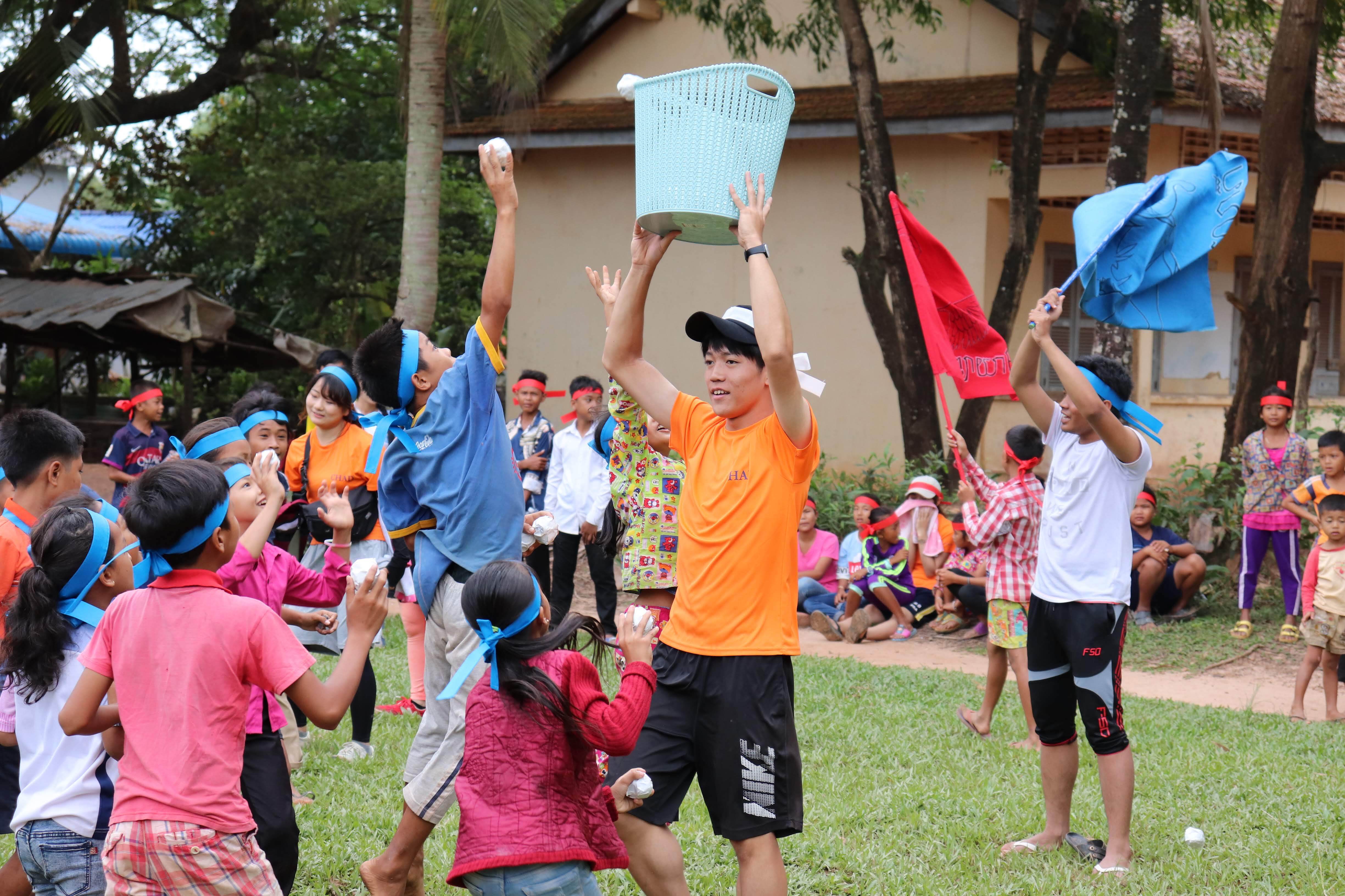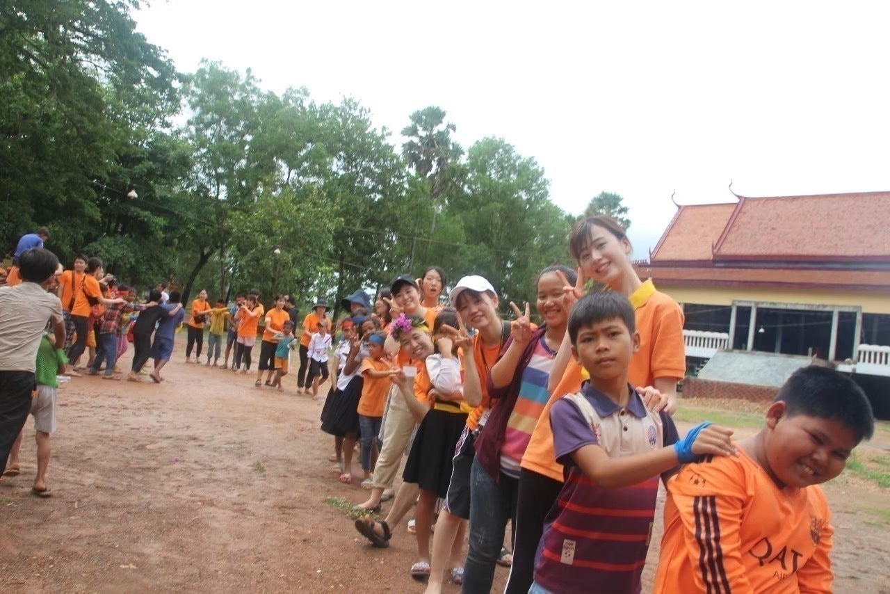 私たちは年間2回カンボジアを訪問し、活動しています。日本での活動としては、渡航に向けた準備・会議の他、週に二度の募金活動や月に一度程度のイベントの開催等を行っています。募金していただいたお金は、物資支援のための費用や、現地で共に支援を行っている王立プノンペン大学日本語学科生の学生団体DOCC(Dream Of Cambodian Children)の活動費にあてています。現地での活動としては、毎年、小学校(昨年度はカンポット州のコンサツ小学校・コンポンスプー州のクロヴェーク小学校を訪問しました。)を訪れ、運動会をはじめとした様々なボランティア活動(下記参照)を実施しています。
