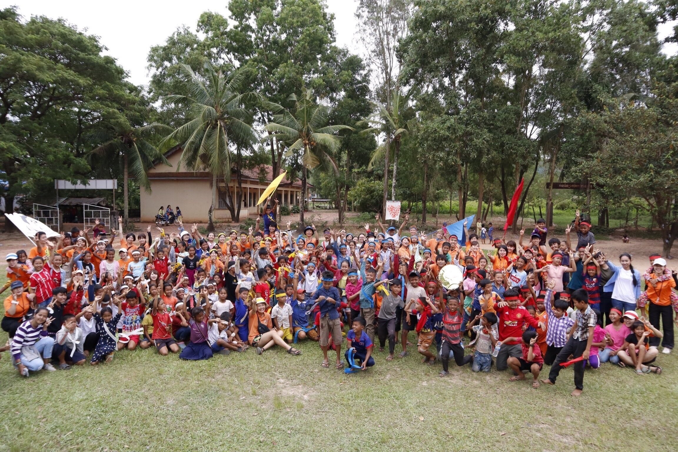 私たちは年間2回カンボジアを訪問し、活動しています。日本での活動としては、渡航に向けた準備・会議の他、週に二度の募金活動や月に一度程度のイベントの開催等を行っています。募金していただいたお金は、物資支援のための費用や、現地で共に支援を行っている王立プノンペン大学日本語学科生の学生団体DOCC(Dream Of Cambodian Children)の活動費にあてています。現地での活動としては、毎年、小学校(昨年度はカンポット州のコンサツ小学校・コンポンスプー州のクロヴェーク小学校を訪問しました。)を訪れ、運動会をはじめとした様々なボランティア活動(下記参照)を実施しています。