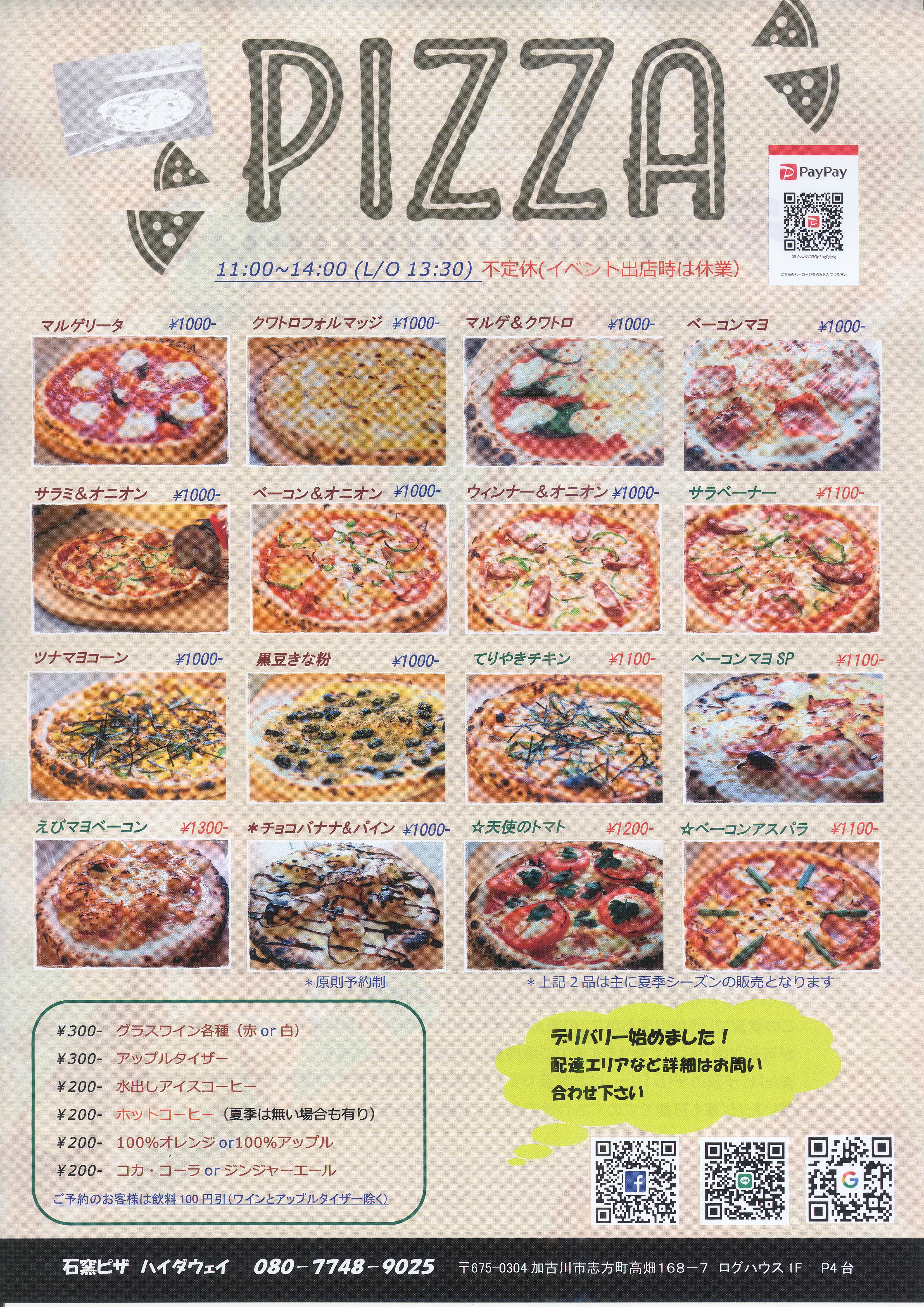 当店(兵庫県加古川市志方)より30㎞程度(姫路・福崎・市川・小野・三木・西脇・神戸市西区を想定)を目安にピザ窯そのものを持参して、皆様の目の前で焼きあげます!今ならハロウィンやクリスマスも対応可!ピザ焼き体験もOK!