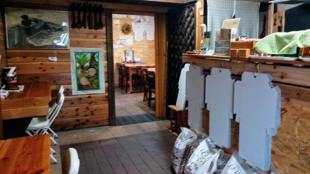 ハイダウェイ(Hideaway)とは隠れ家という意味ですが、25年前に自宅としてログハウスをハンドメイドしました。その一部を改装し、ピザ屋を始めました。素人の手作りなので店舗は妥協の産物と化してますが、ピザ作りはプロなので妥協はありません!
