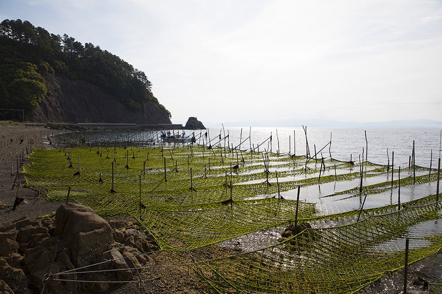 ここは、高波の影響を受けにくく、山の豊富な栄養分を吸収した山水が流れ込むため、毎年良質の胞子が取れる良い漁場で、父の自慢の漁場でもありました。