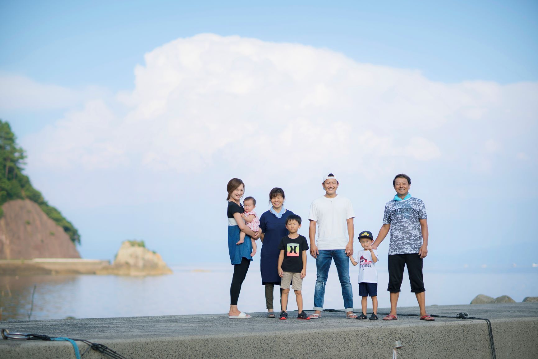私は、中学卒業と同時に一度は島を離れましたが、代々続く家業を継承すべく、2019年に妻と3人の子供を連れUターンし、現在は獅子島で両親と7人で生活しながら漁の腕を磨いております。