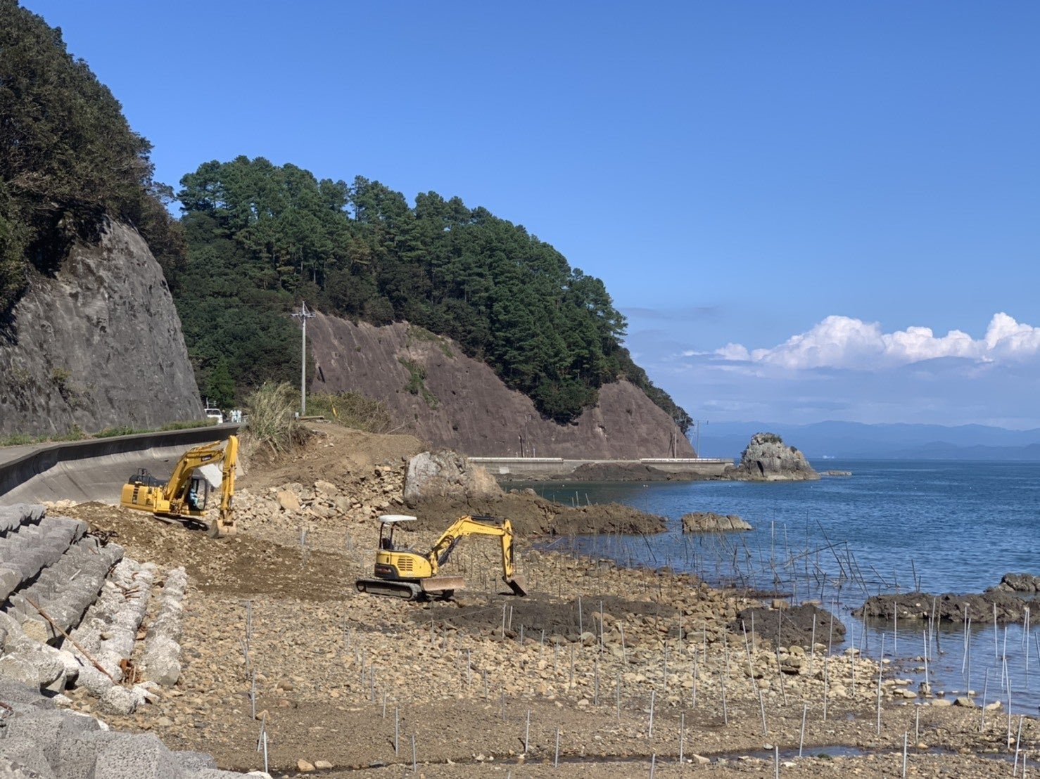 8月17日から始まる土砂撤去作業の完了を待って、すぐに漁場の整備・杭の打ち込みを進める予定です。